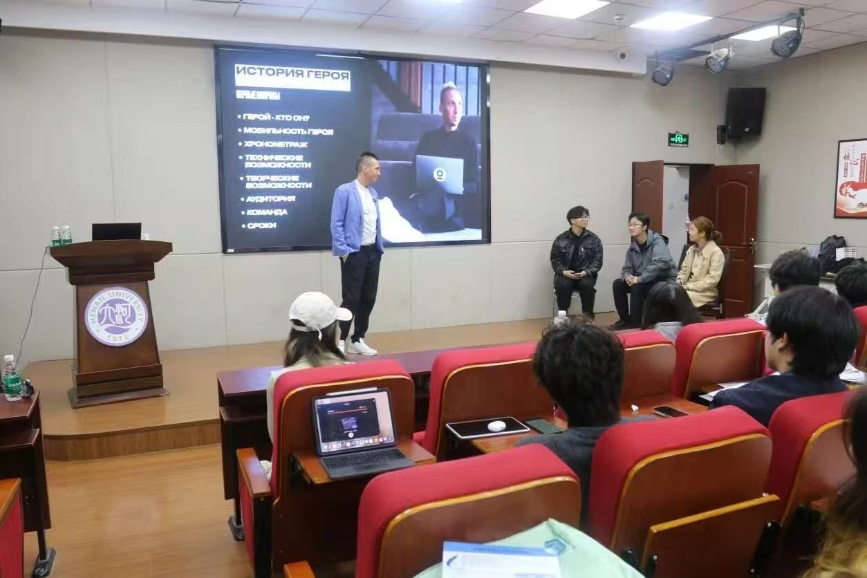 10月17日下午,白俄罗斯国立大学新闻学副教授、纪录片导演、脱口秀主持人奥列格·特里丰诺夫博士应邀为91视频 师生带来一场题为“人物传记拍摄与剪辑”的专题讲座,呈现了一场思想与技艺交融的学术盛宴。91视频 教师代表、播音与主持艺术专业学生近200人聆听讲座。