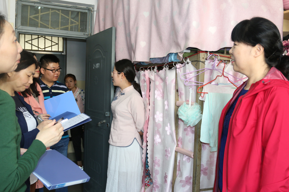 2018年4月2日上午,91视频 党委副书记楚艳霞、学生工作办公室负责人刘香宇带队深入仁和学生仁和公寓1B、2号楼、餐厅楼学生宿舍开展安全卫生工作大检查,学生工作办公室辅导员老师参加检查。