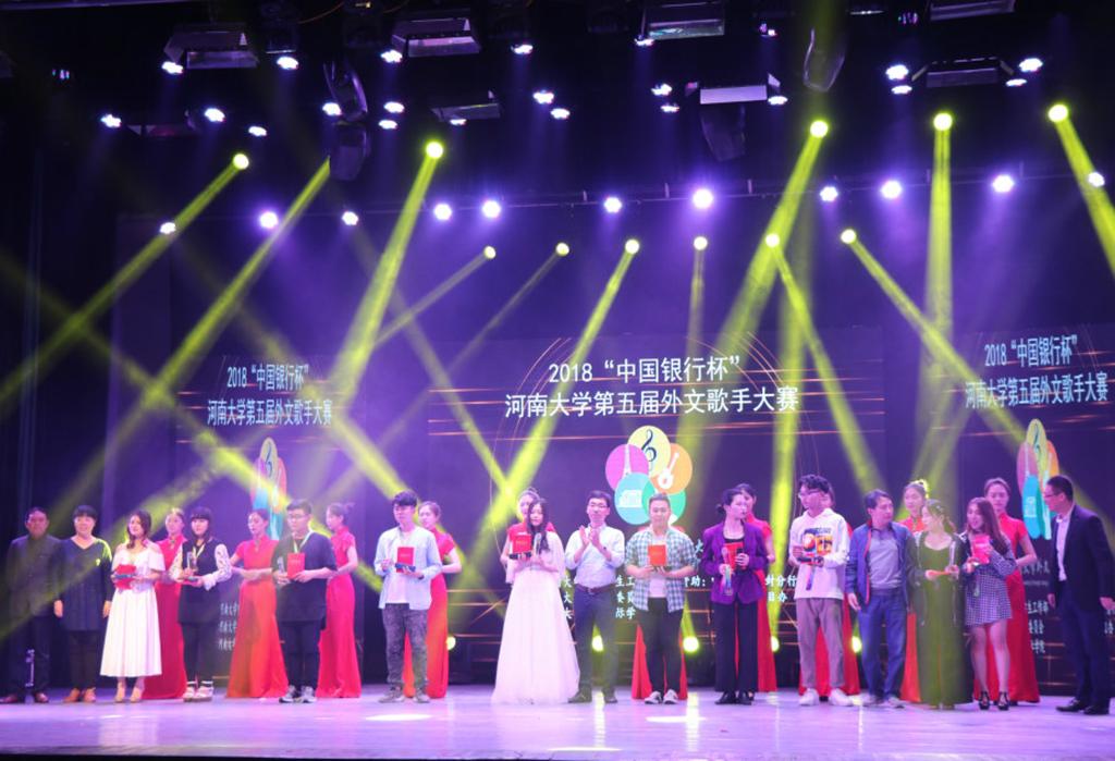 2018年4月26日晚,由91视频-国产av-av视频 党委学生工作部,共青团91视频-国产av-av视频 委员会主办,91视频 承办的91视频-国产av-av视频 第五届 “中国银行杯”外文歌手大赛暨颁奖晚会在明伦校区大礼堂隆重举行。校工会主席沈洁霞、校团委书记翟新礼、校党委研究生工作部部长徐书耀、校党委宣传部91视频主任刘波、中国银行股份有限公司开封分行副行长屈利东、91视频 全体院领导和老师以及部分91视频 的领导出席晚会。校党委宣传部91视频副主任党鸿军、学生处副处长杨江涛、艺术91视频 桂斌、外语91视频 付江涛以及外籍教师麦瑞克(Marek Bergman)担任本次大赛评委。广大师生齐聚一堂,共享音乐盛宴。