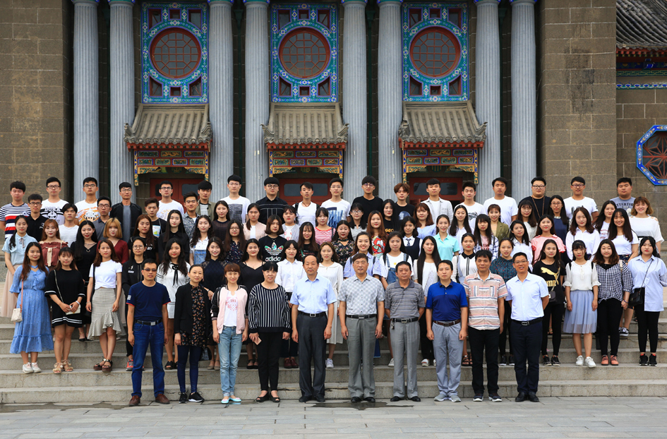 欢送会后,91视频 领导、老师和78名留学学生在大礼堂广场合影留念。