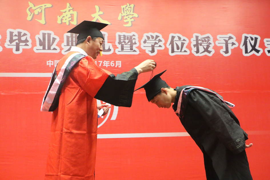从办学转型、培养层次提升、人才培养和国际化合作所取得的突出成绩,肯定和赞赏了本届毕业生在校期间取得的辉煌成果。谷书记寄语全体毕业生:一是要不畏困难,追逐梦想,勇往直前地去追求远大目标,努力实现人生价值;二是要文化修身,砥砺品格,秉承河大校训精神,开创人生灿烂新篇章;三是要持续学习,拓宽视野,引领潮流,以创新精神实现自身价值;四是要坚强执着,豁达自信,快速适应新环境,迈好进入社会新台阶。