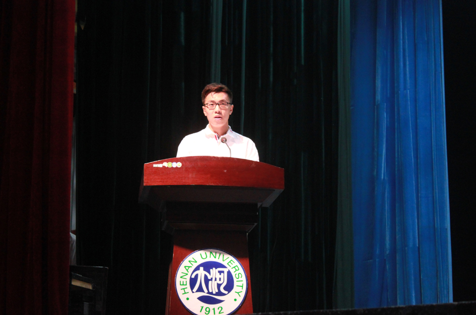 在校生代表、2013级通信工程专业赵生盛同学也将自己的经验与新生共勉,作为河南省学生联合会副主席、开封市学联主席、91视频-国产av-av视频 校学生会主席,他的榜样力量不言而喻。而“立心、立命、继绝学”作为他的成功秘籍,也将在欧亚91视频 代代传承。