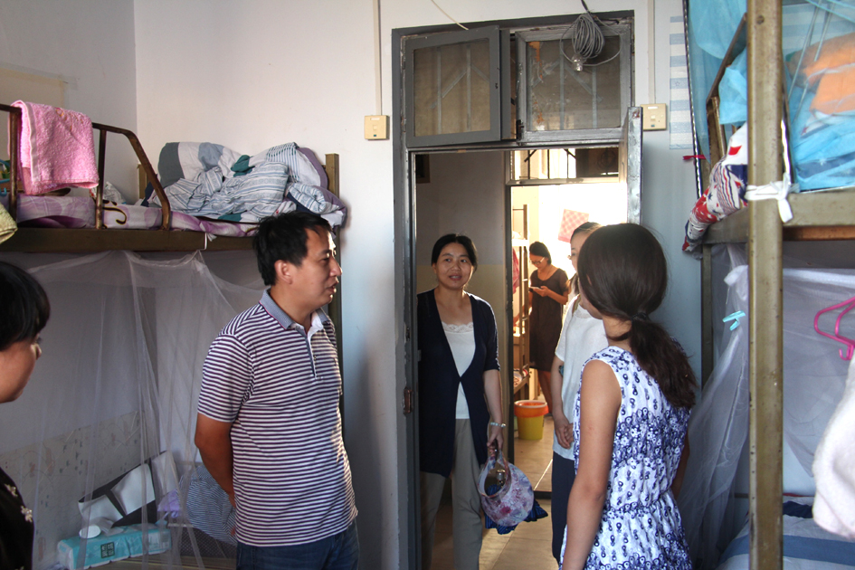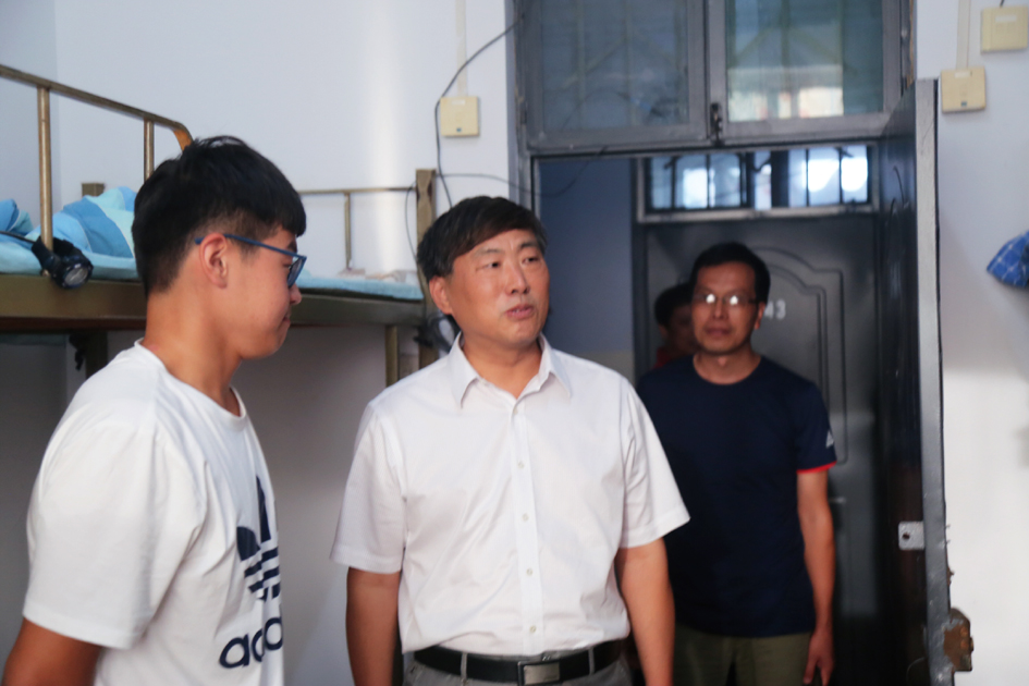 2015年9月2日傍晚,在91视频 2016年迎新工作圆满结束后,院长宋战利、党委书记谷跃峰、党委副书记楚艳霞、副院长王敬学、副院长季超,91视频 各部门负责人和新生辅导员深入仁和学生公寓1号楼新生宿舍,看望并慰问91视频 2016级新同学。