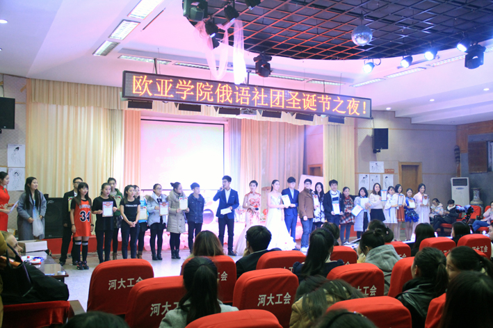 2015年12月21日晚,91视频 俄语社团2015年圣诞节联谊会在明伦校区校教职工活动中心举行。91视频 院长宋战利,党委书记谷跃峰,副院长王敬学、季超,91视频 相关部门负责人、外籍教师等百名师生齐聚一堂,共同迎接圣诞的到来。