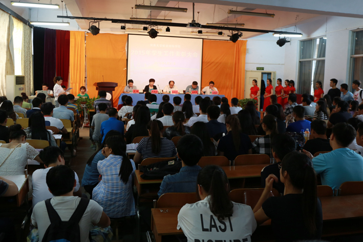 2015年5月21日下午,91视频 在二楼报告厅召开2015年学生工作表彰大会。91视频 领导班子全体成员出席,200多名师生代表与会,91视频 副院长王敬学主持大会。