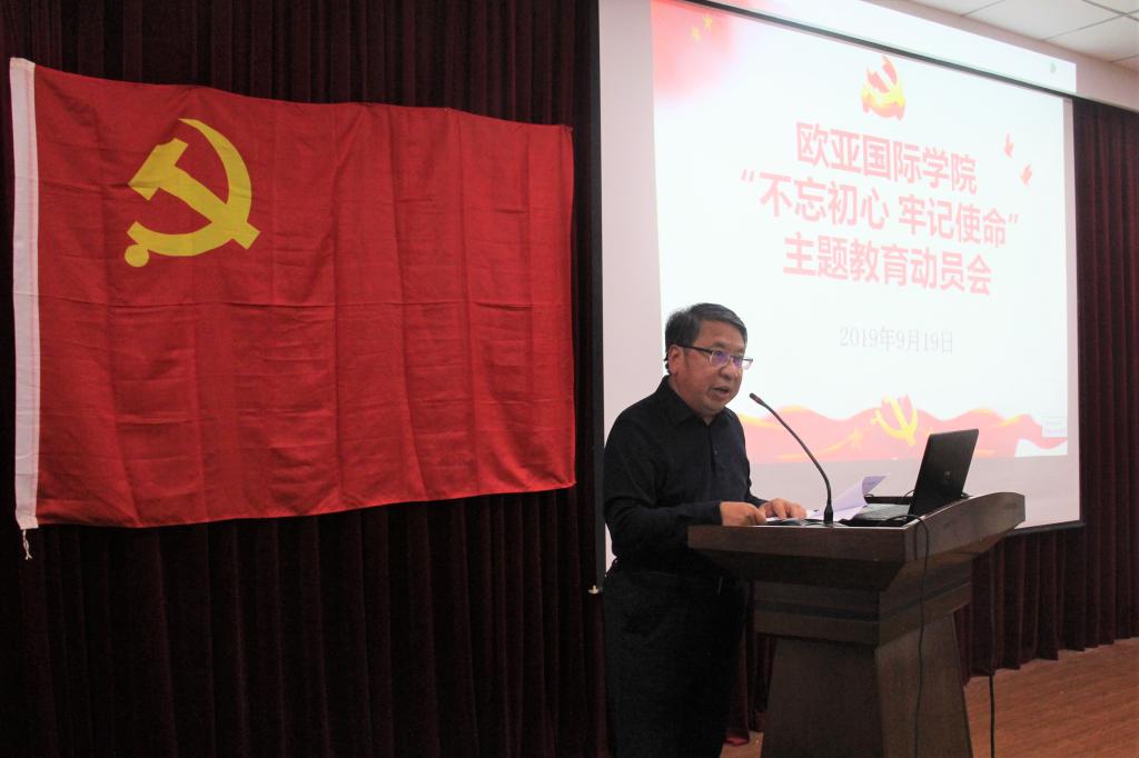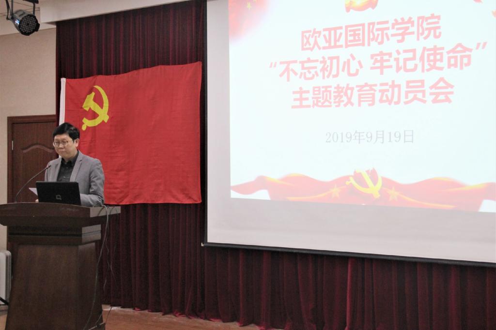 9月19日下午,91视频 “不忘初心、牢记使命”主题教育动员会在91视频 二楼报告厅举行。91视频 党委书记李卫国,院长赵成新,党委副书记黄鑫,副院长杨春伟,以及全体师生党员参加了会议。会议由91视频 党委副书记黄鑫主持。