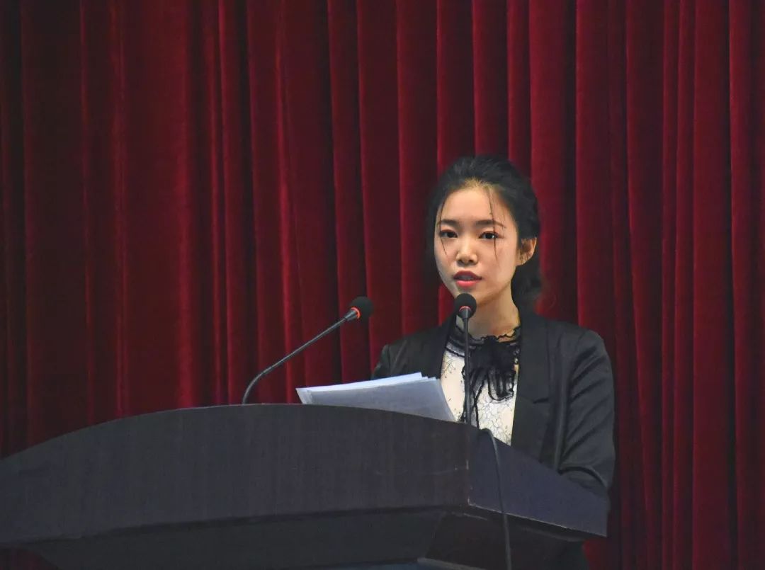 院新媒体中心主任、2017级环境设计专业谢莹同学作为在校生代表与新生们分享了经验。她认为大学不在于大,而在于学,学生为本、学者为先、学术为基、学风为要。作为已有两年大学经验的学姐,她建议大家要学会“独立”——能够独立生活、善于独立思考、养成独立人格,不仅要学会做诚实、实干、有责任感的人,也要学会规划自己的大学时光和人生。