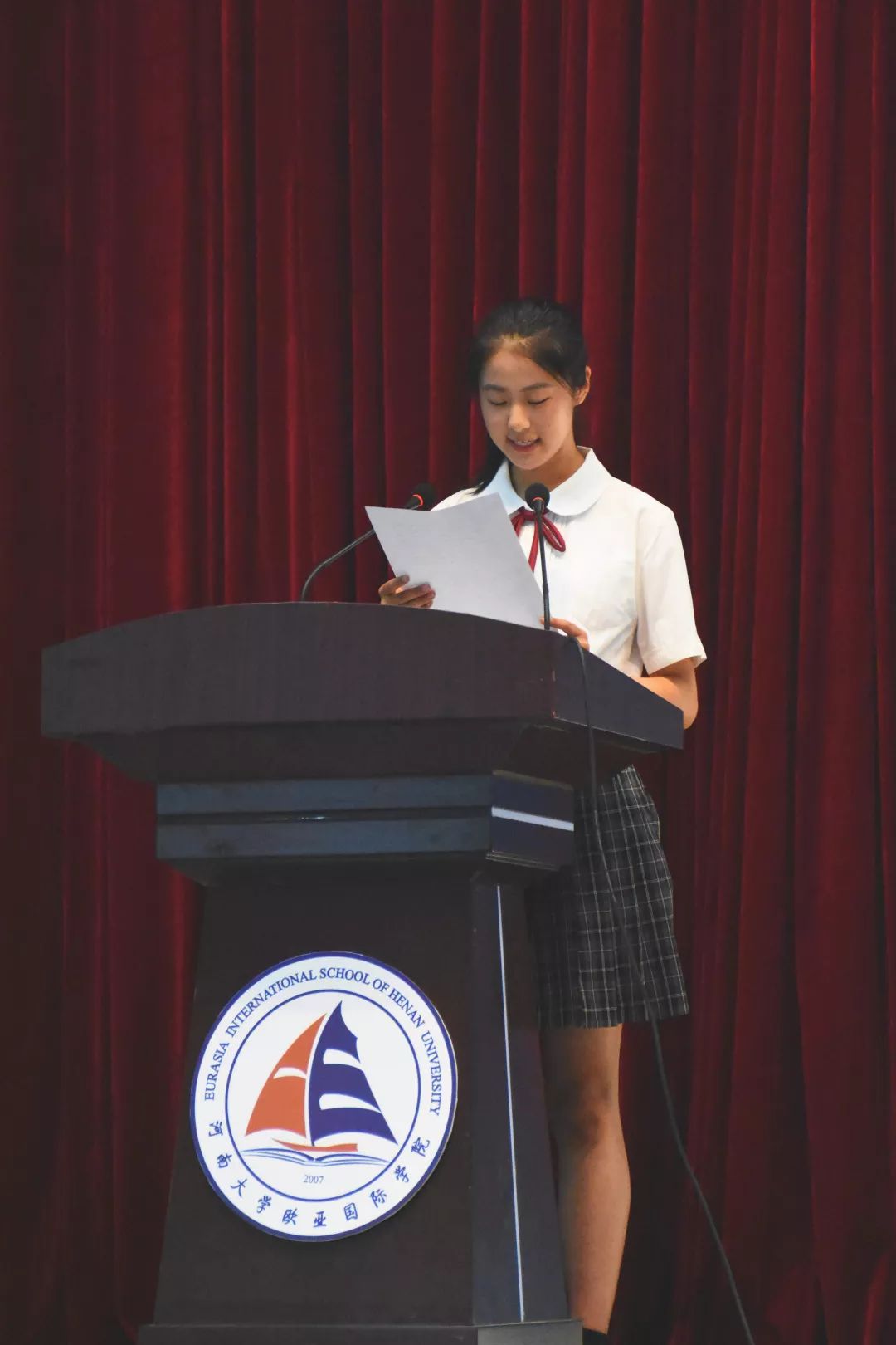 开学典礼在雄壮的国歌声中正式开始。
