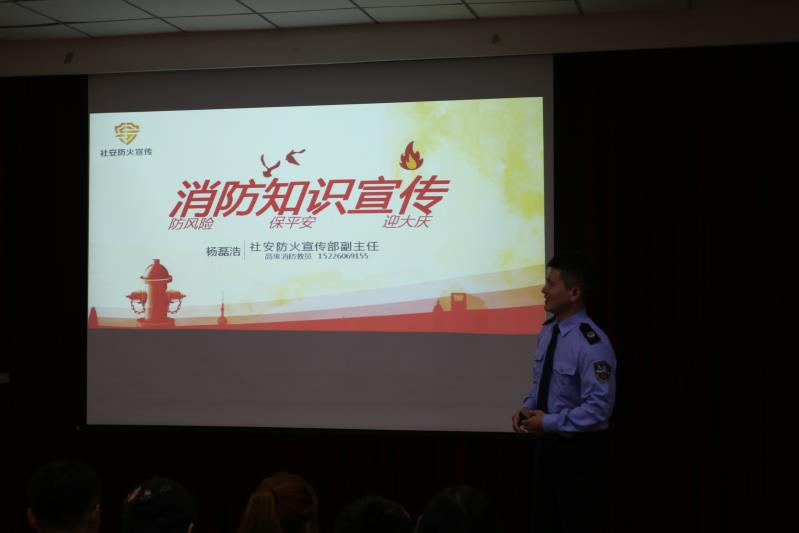河南省消防协会杨磊浩教官用一个个真实案例为师生们生动地讲授了消防安全的重要性、灭火工具使用方法、燃气安全措施、火灾逃生与交通工具逃生的具体方法。