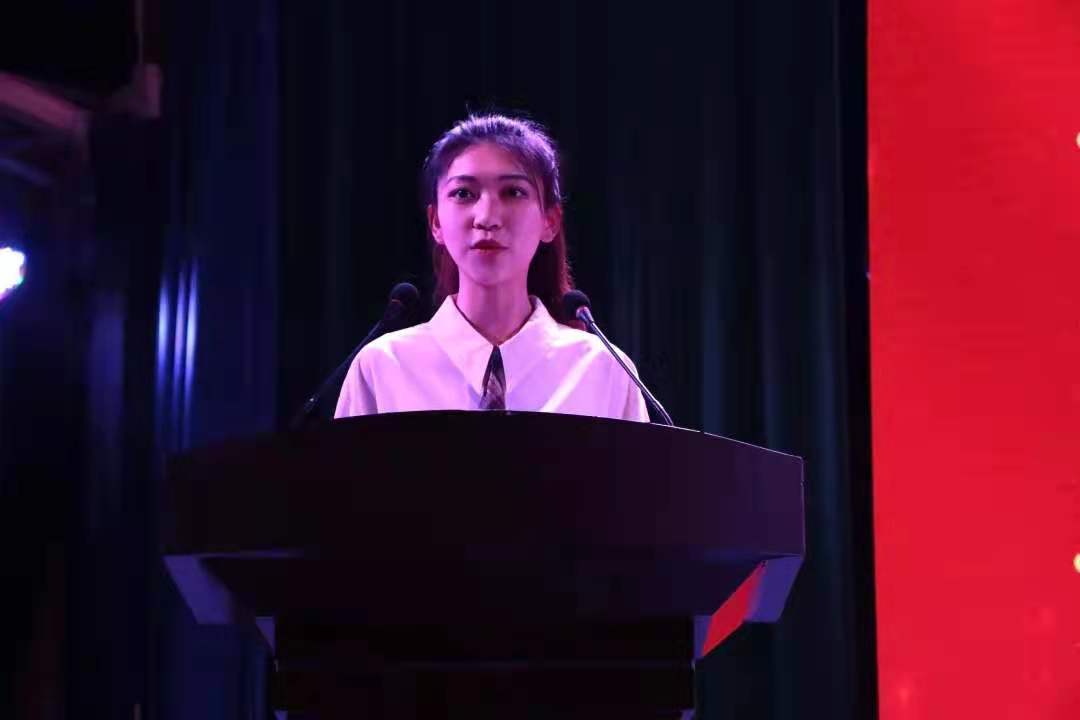 在校生代表2018级学生孟琪睿发言。孟琪睿感谢了学长学姐的帮助和鼓励并表示会认真踏实、勤勉刻苦,用实际行动为母校的发展进步贡献青春和力量。