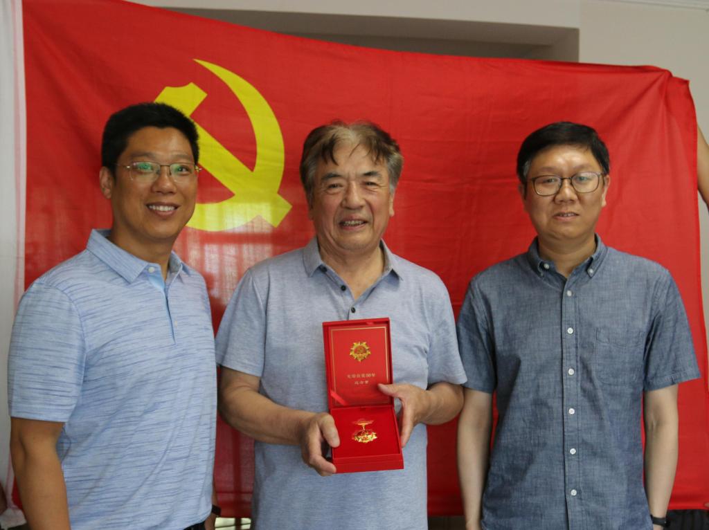 6月22日下午,91视频 党委副书记黄鑫、副院长杨春伟一行前往老党员高忠志同志家中看望慰问并颁发“光荣在党50年”纪念章。