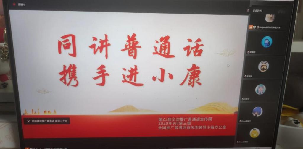 活动初,各支部团支书在线上召开主题班会,组织全体学生开展“推广学习普通话”的相关主题班会,学习汉字渊博内涵。会上播放了有关普通话的公益广告和宣传视频,加强学生对于普通话的了解。同时,也呼吁大家使用普通话交流学习,营造良好的推普氛围,构建普通话推广的语言环境。