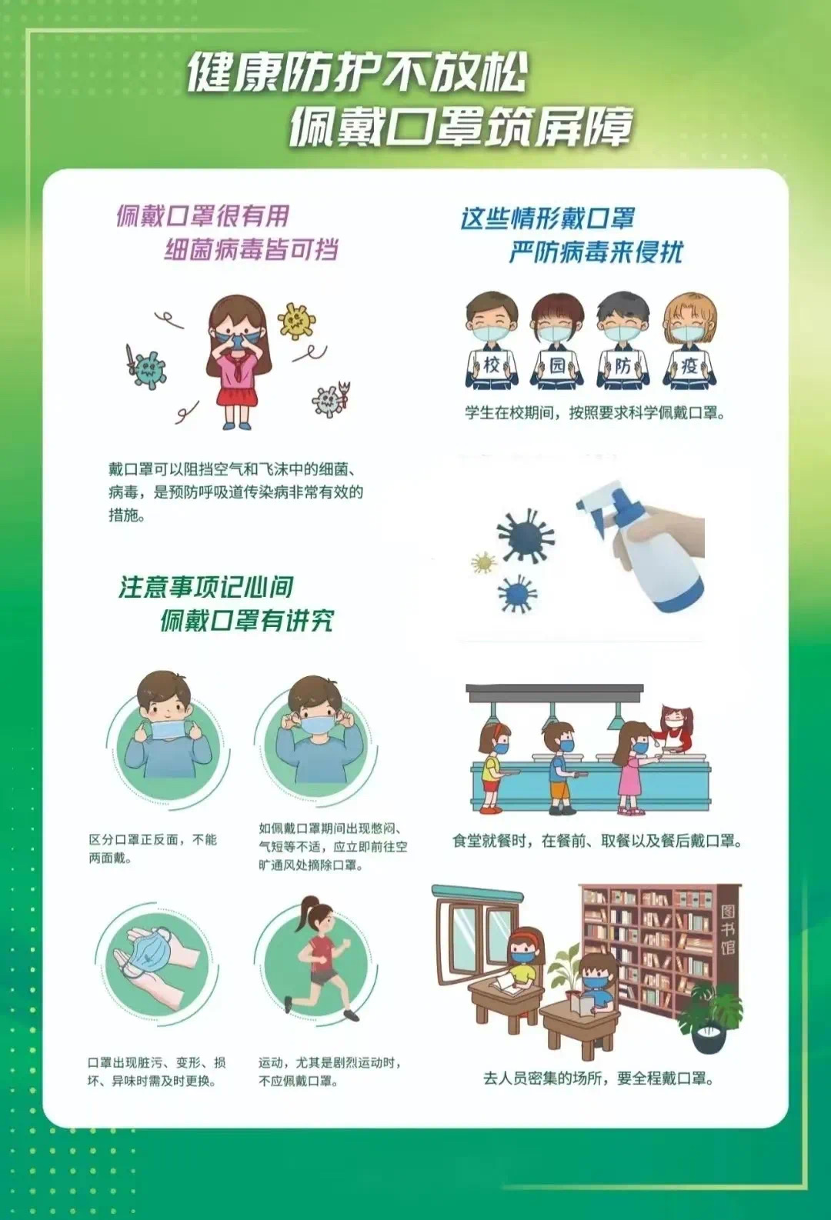 守护自己的安全,就是守护大家的安全每个人都是自己健康的第一责任人让我们戴好口罩全力做好个人健康防护,非必要不出校,非紧急不离学校所在地。