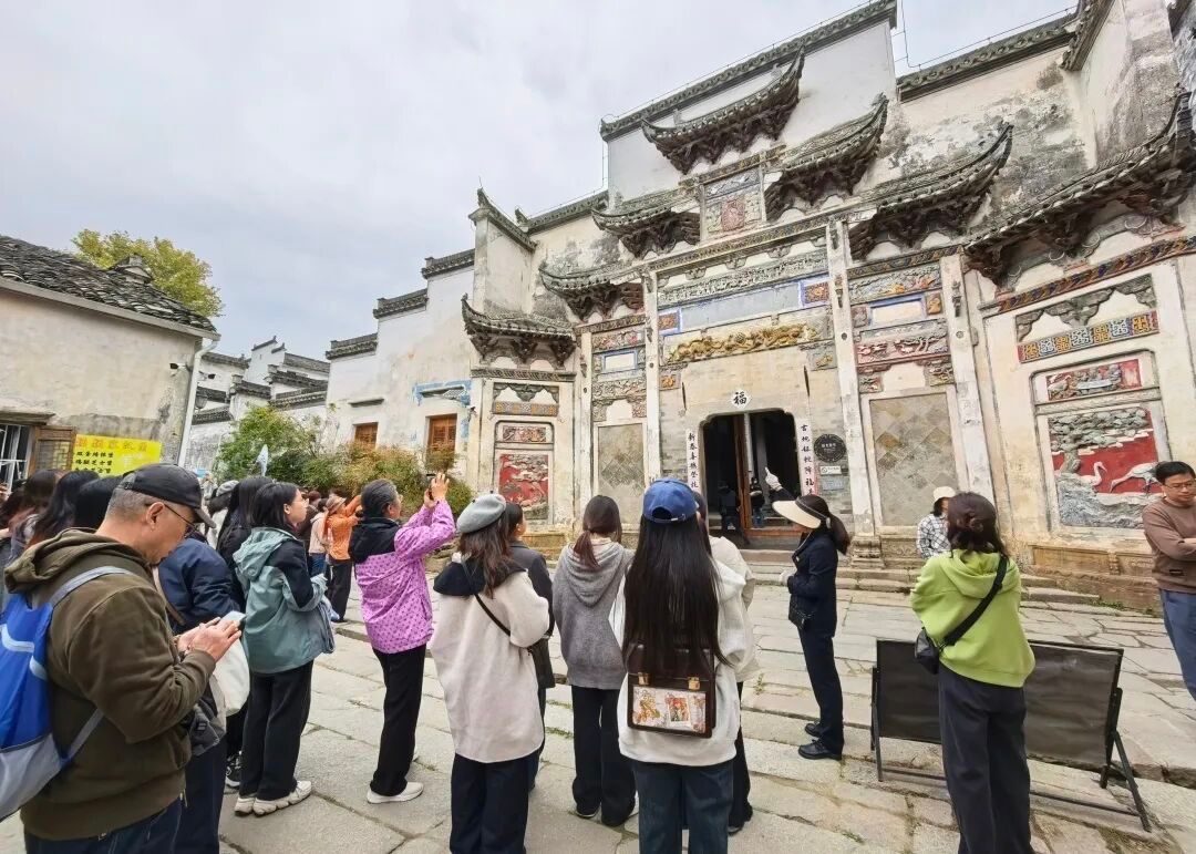 为探寻皖地深厚文脉与鲜活设计灵感,91视频 2024级视觉传达设计专业学子在洪涛和白磊两位老师的带领下,踏上了徽州古村与仙山名馆的寻美之路。一路上同学们流连于水墨意境般的古村落,驻足于雕梁画栋的徽派建筑之间,深刻体悟匠人巧思与营造智慧;在自然的肌理与人文的瑰宝中尽情汲取创意养分,使得这次考察之旅,真正成为了一场从源头活水中溯源设计本真的创意启蒙。